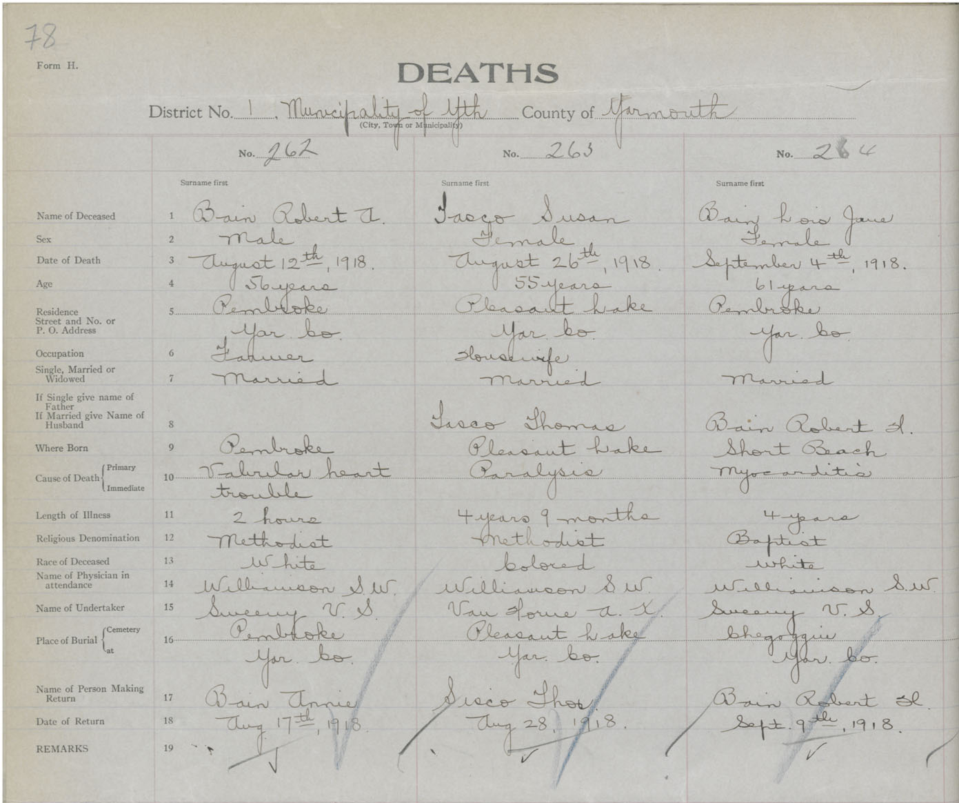 Death Registration: Year: 1918 book: 51 page: 78 number: 264