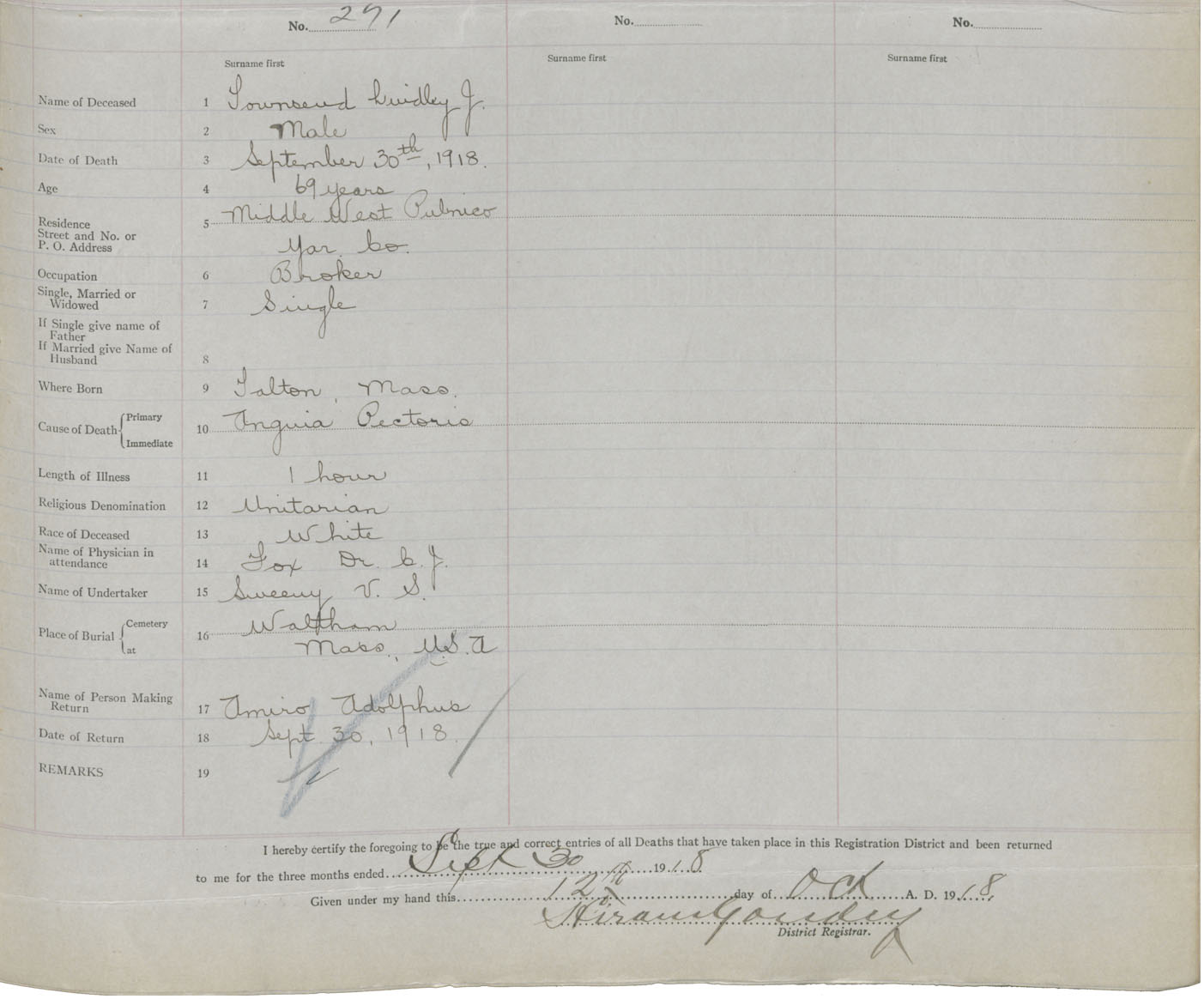 Death Registration: Year: 1918 book: 51 page: 79 number: 271
