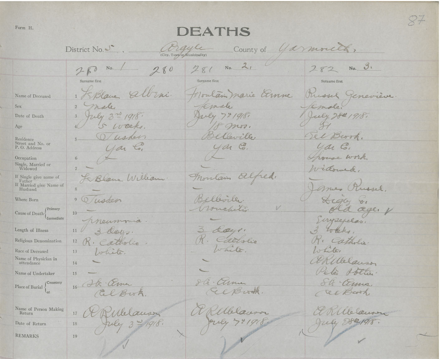 Death Registration: Year: 1918 book: 51 page: 87 number: 282
