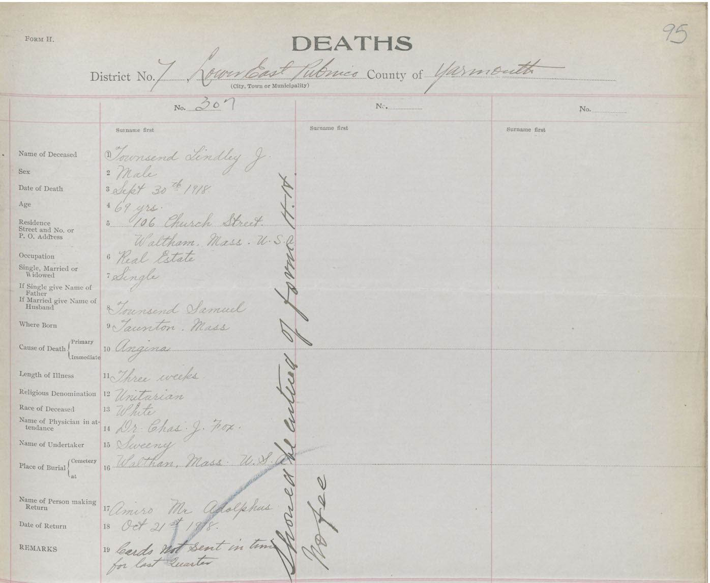 Death Registration: Year: 1918 book: 51 page: 95 number: 307