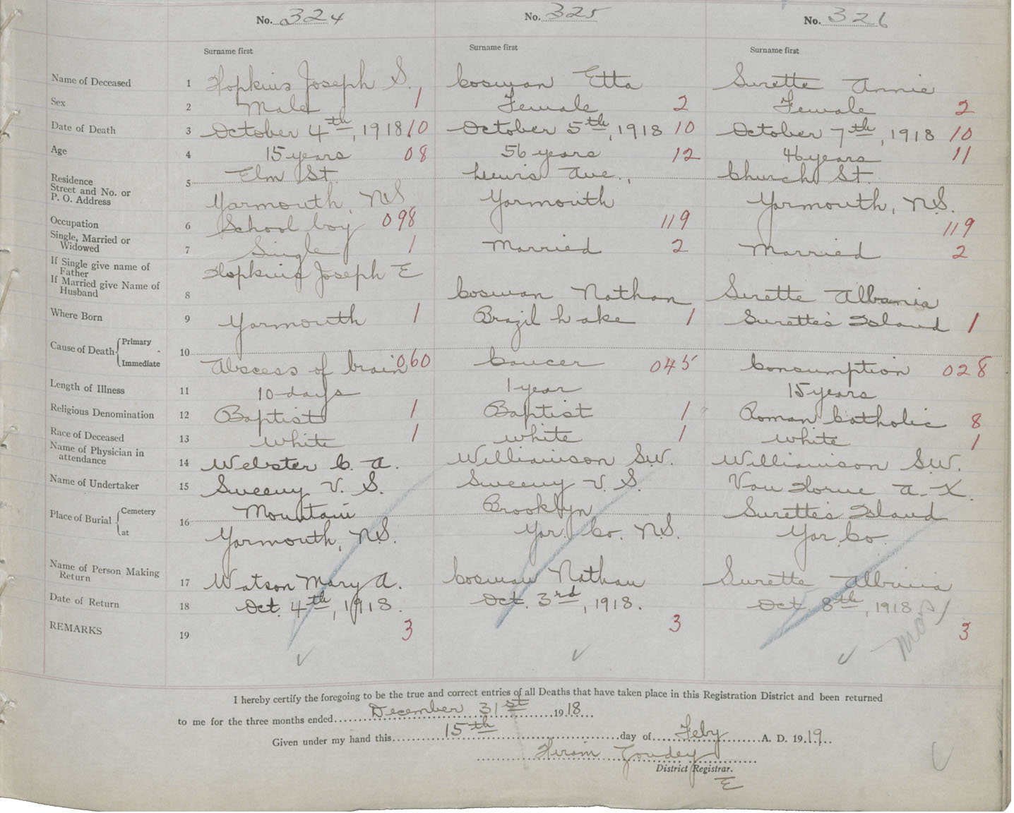 Death Registration: Year: 1918 book: 51 page: 107 number: 326