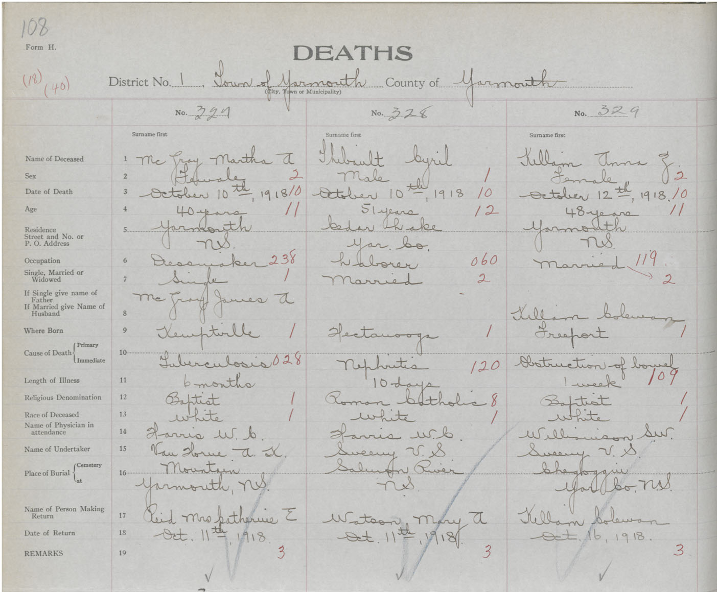Death Registration: Year: 1919 book: 51 page: 108 number: 329