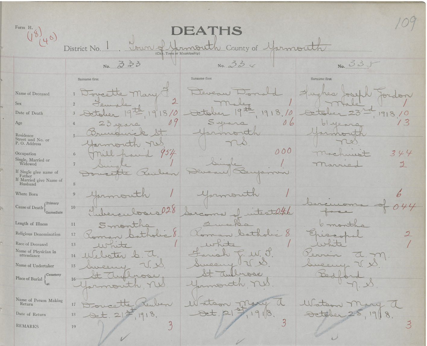 Death Registration: Year: 1918 book: 51 page: 109 number: 335