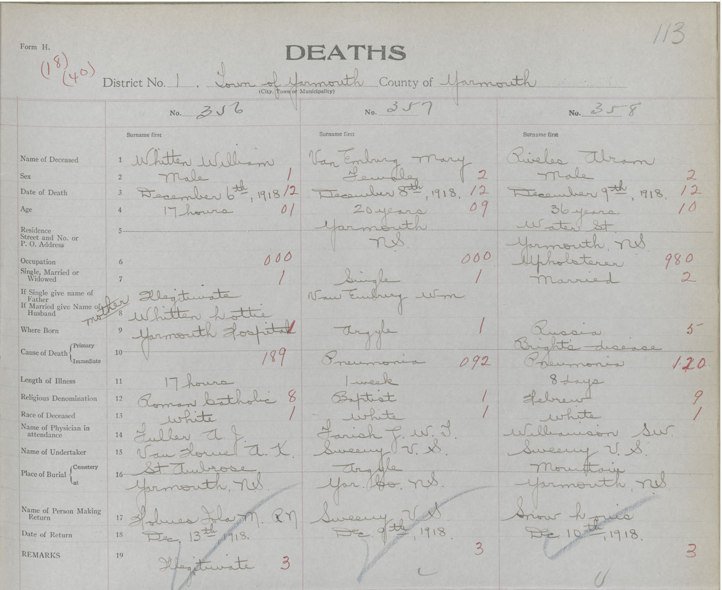 Death Registration: Year: 1918 book: 51 page: 113 number: 358
