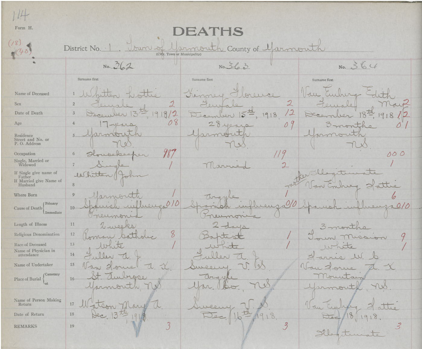 Death Registration: Year: 1918 book: 51 page: 114 number: 364