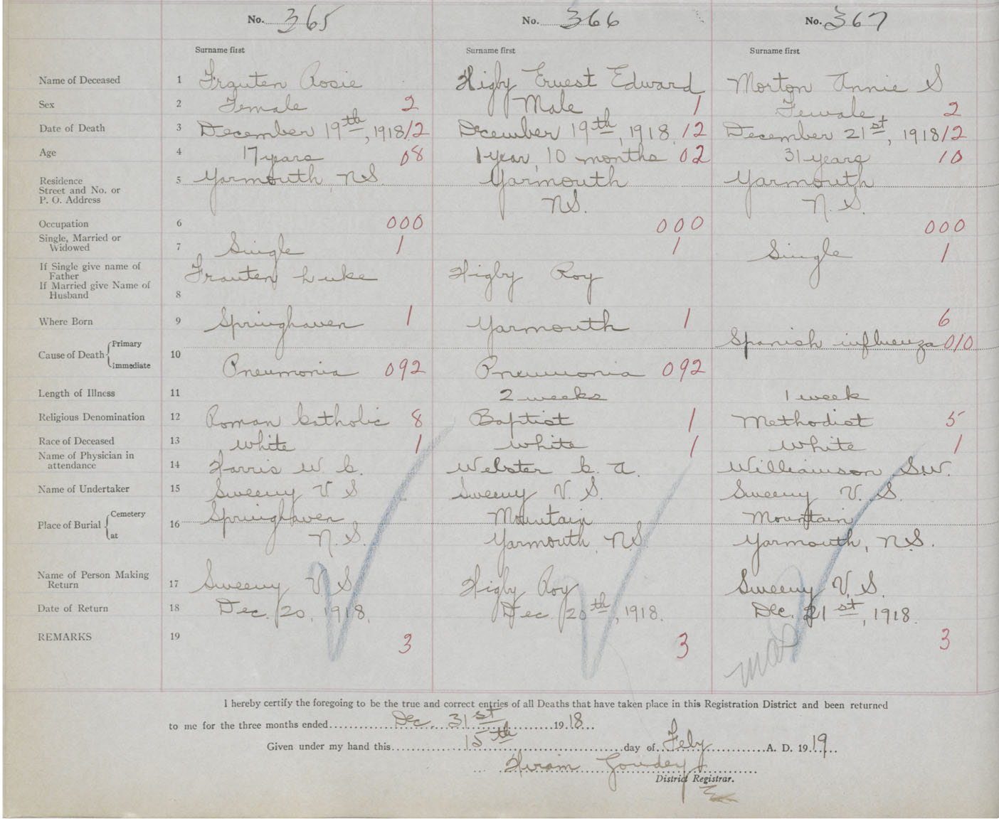 Death Registration: Year: 1918 book: 51 page: 114 number: 367