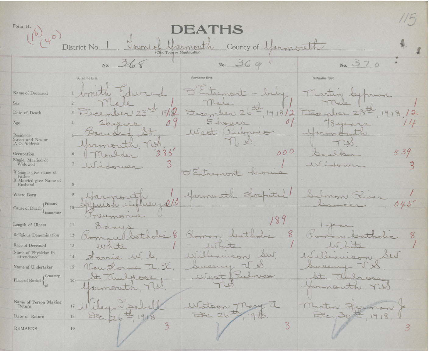 Death Registration: Year: 1918 book: 51 page: 115 number: 370