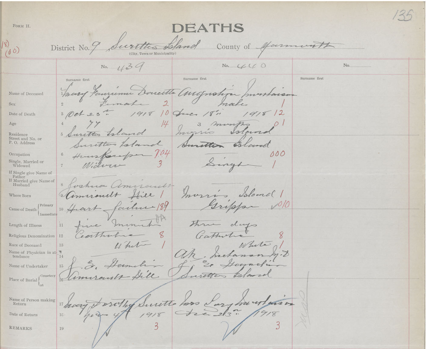 Death Registration: Year: 1918 book: 51 page: 135 number: 439