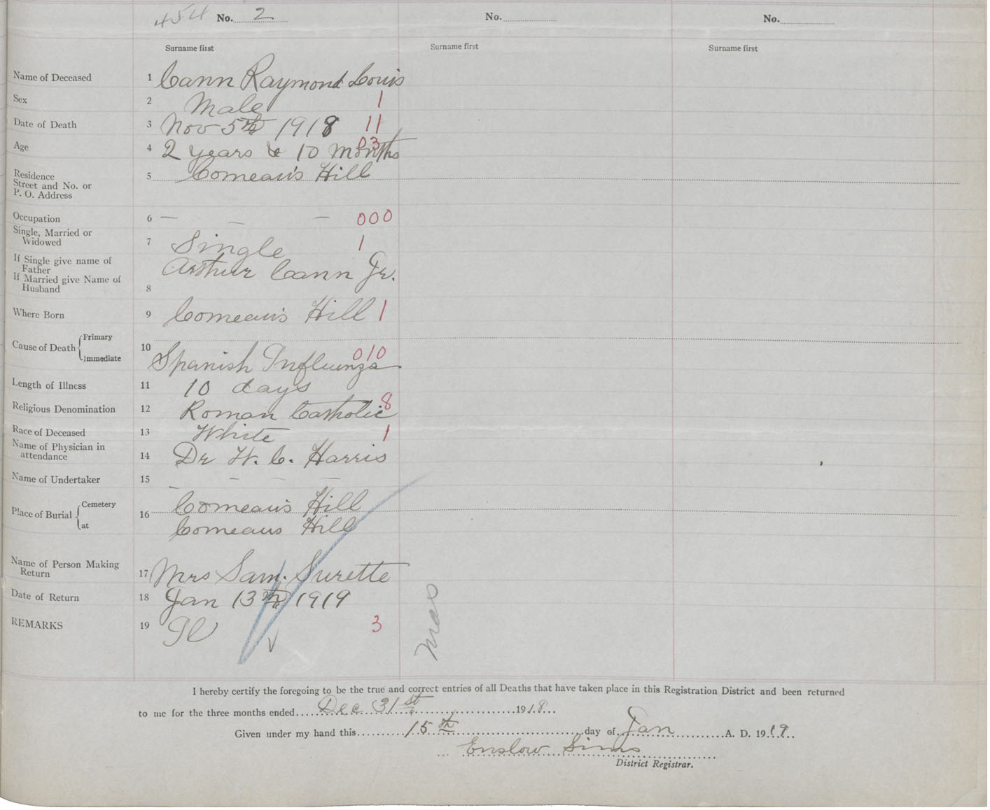 Death Registration: Year: 1919 book: 51 page: 143 number: 454