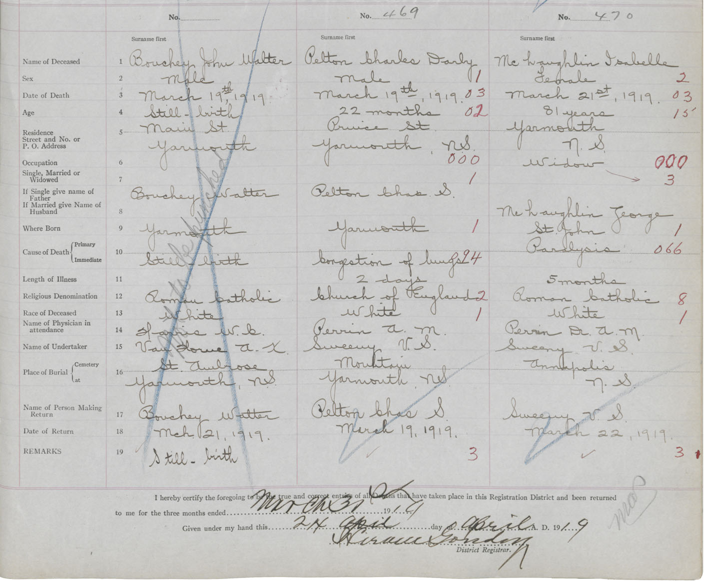 Death Registration: Year: 1919 book: 51 page: 147 number: 469