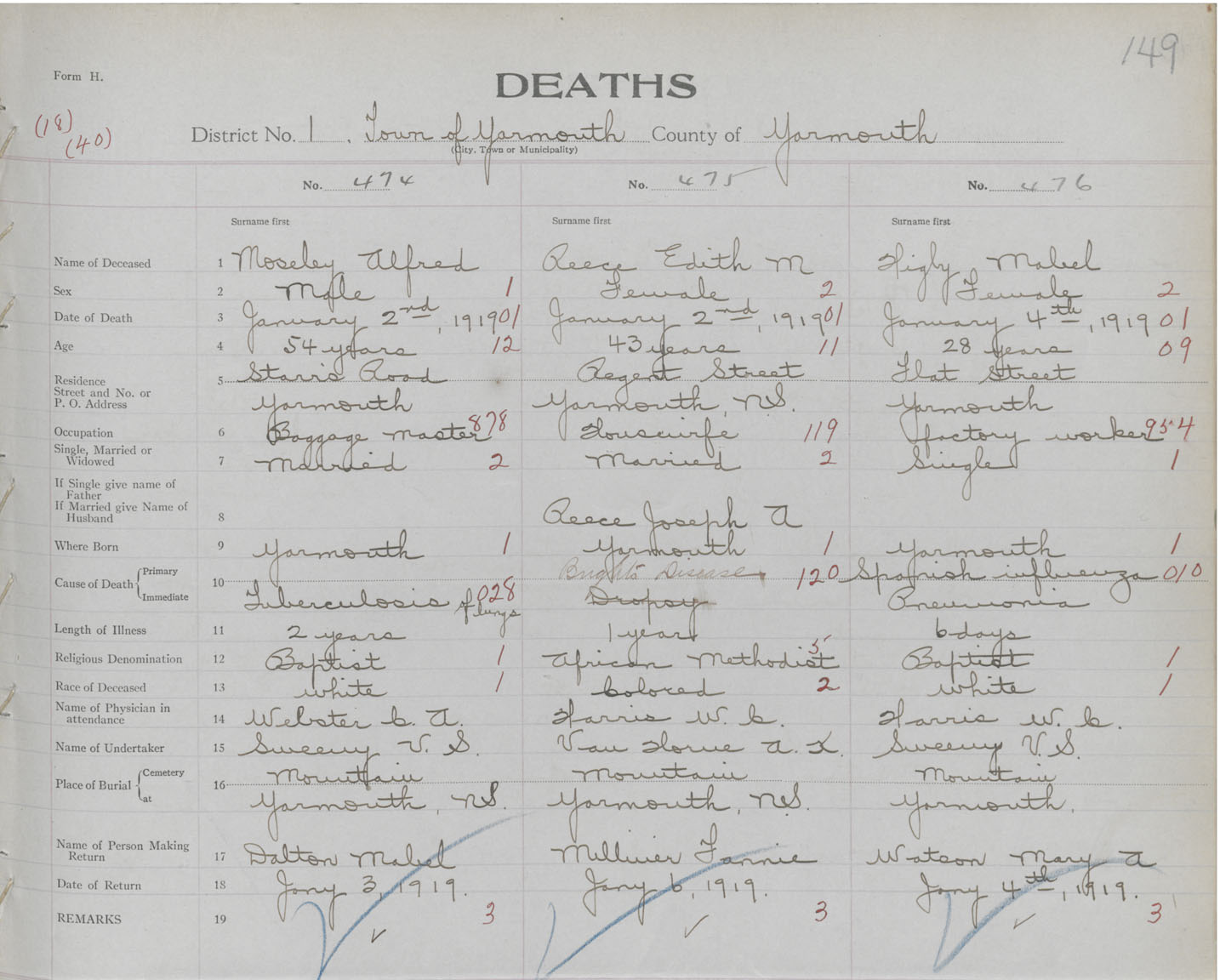 Death Registration: Year: 1919 book: 51 page: 149 number: 474