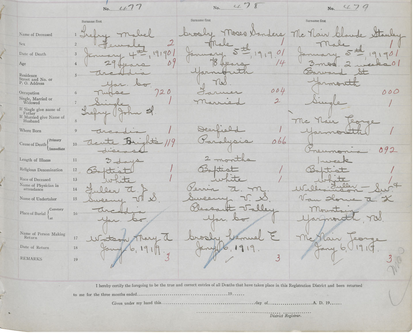 Death Registration: Year: 1919 book: 51 page: 149 number: 477