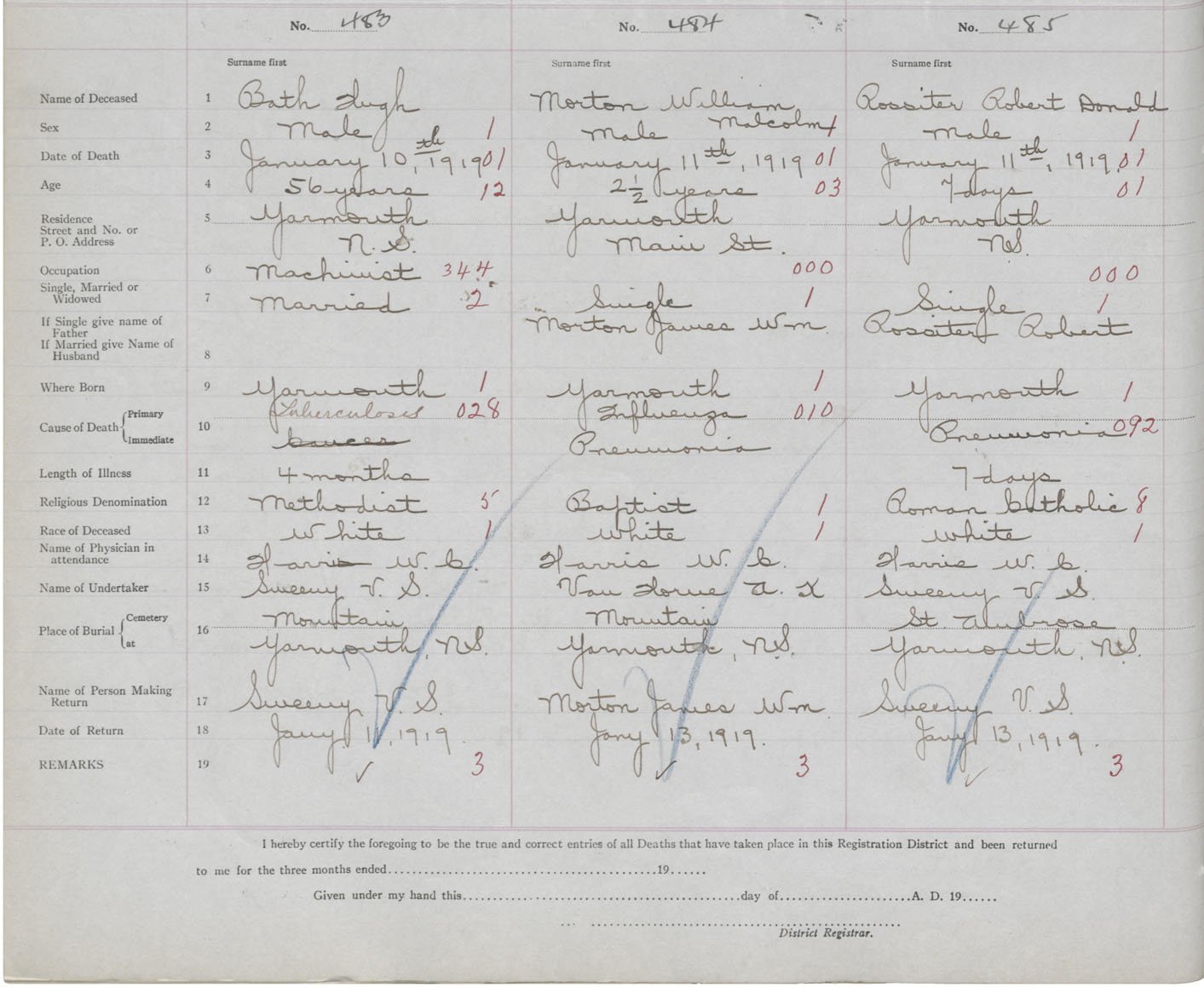 Death Registration: Year: 1919 book: 51 page: 150 number: 483