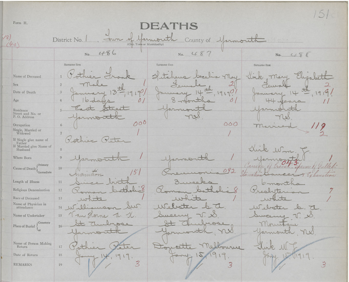 Death Registration: Year: 1919 book: 51 page: 151 number: 486