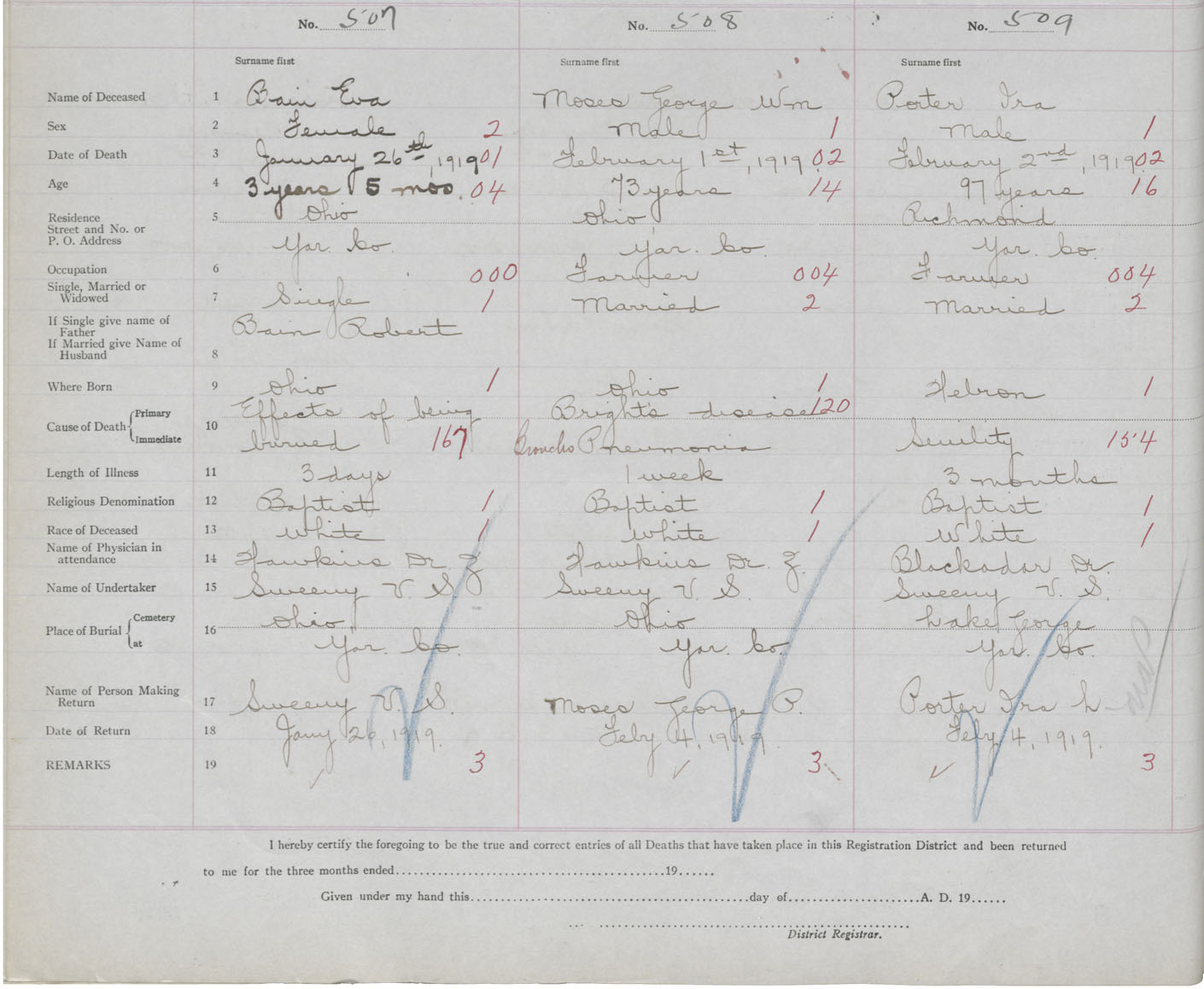 Death Registration: Year: 1919 book: 51 page: 154 number: 507