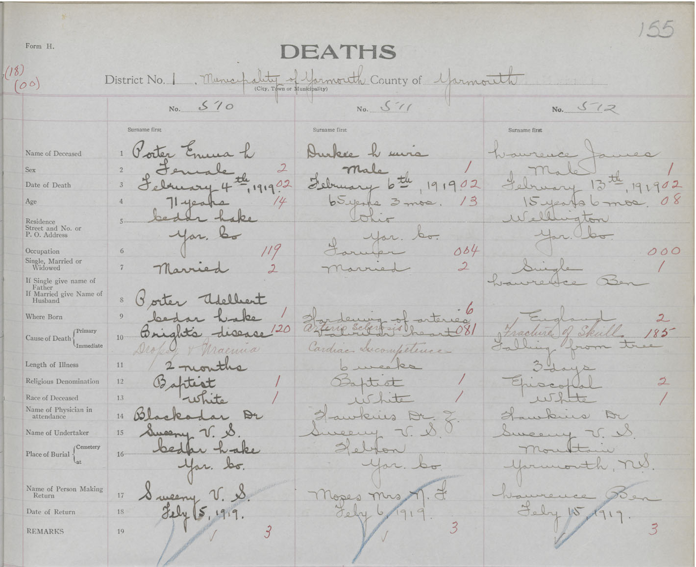 Death Registration: Year: 1919 book: 51 page: 155 number: 510