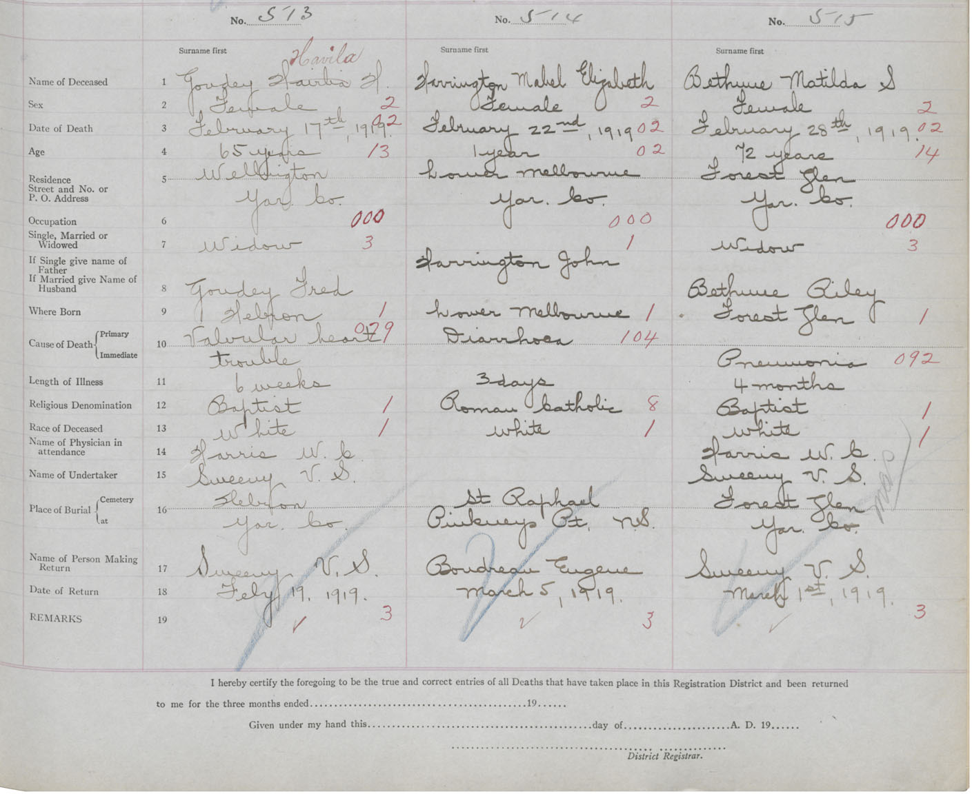 Death Registration: Year: 1919 book: 51 page: 155 number: 513