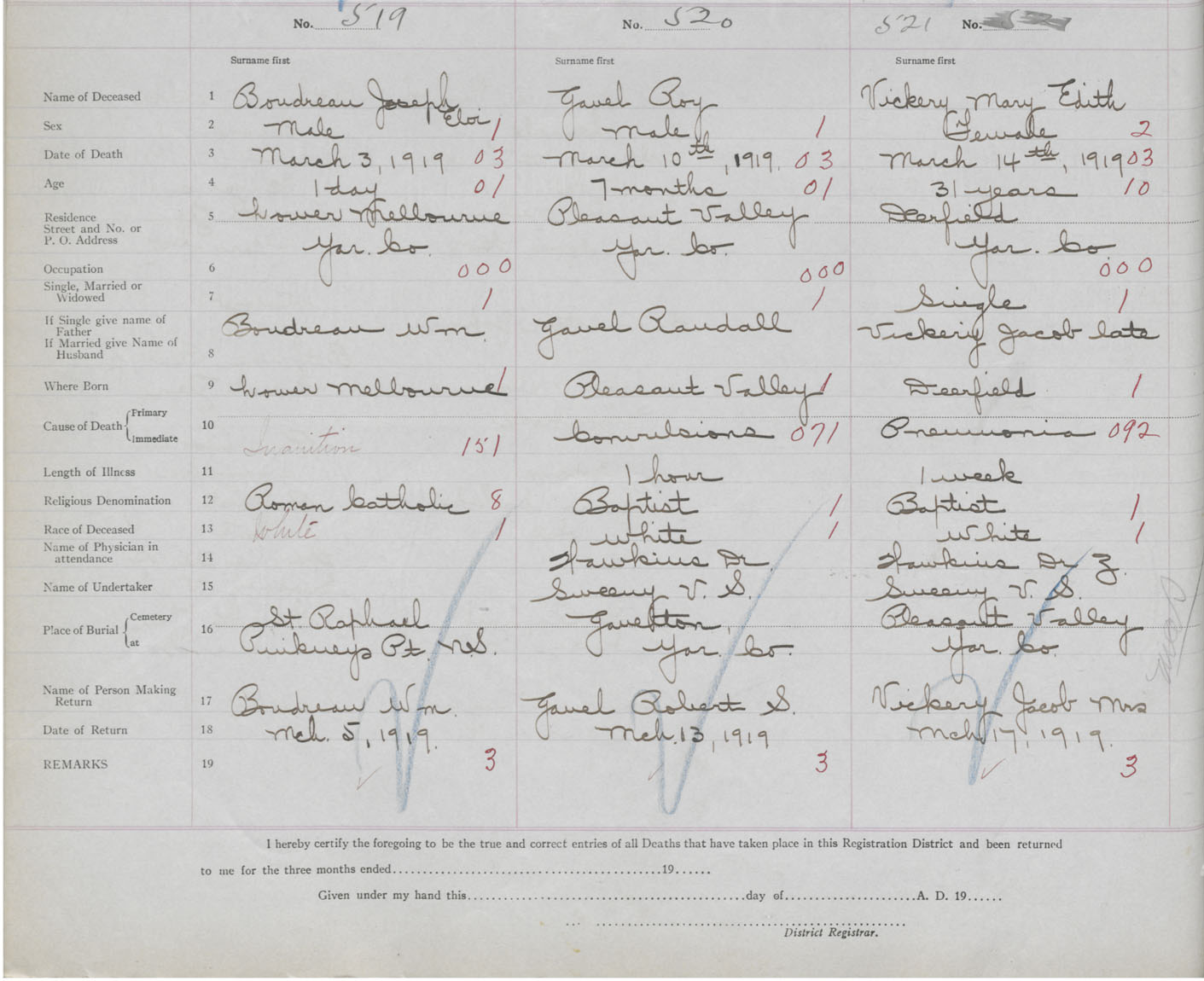 Death Registration: Year: 1919 book: 51 page: 156 number: 519