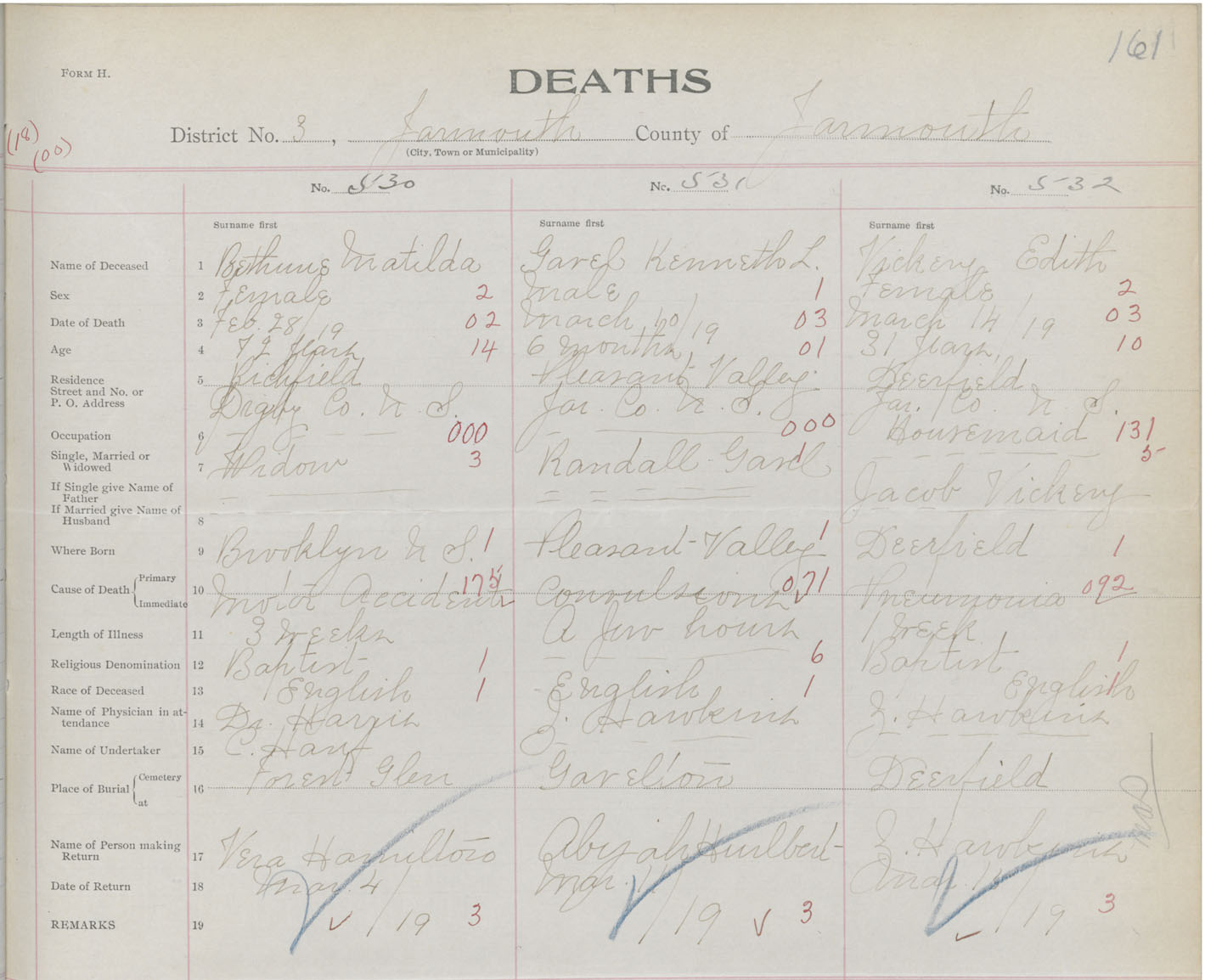 Death Registration: Year: 1919 book: 51 page: 161 number: 530