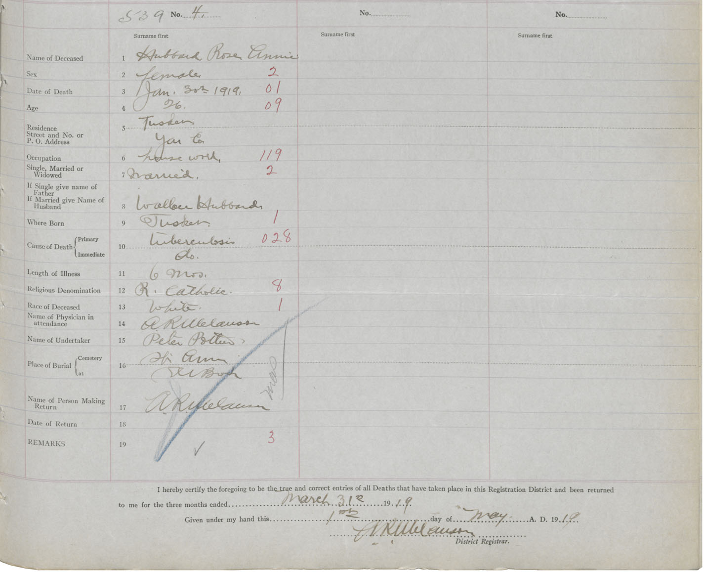 Death Registration: Year: 1919 book: 51 page: 165 number: 539