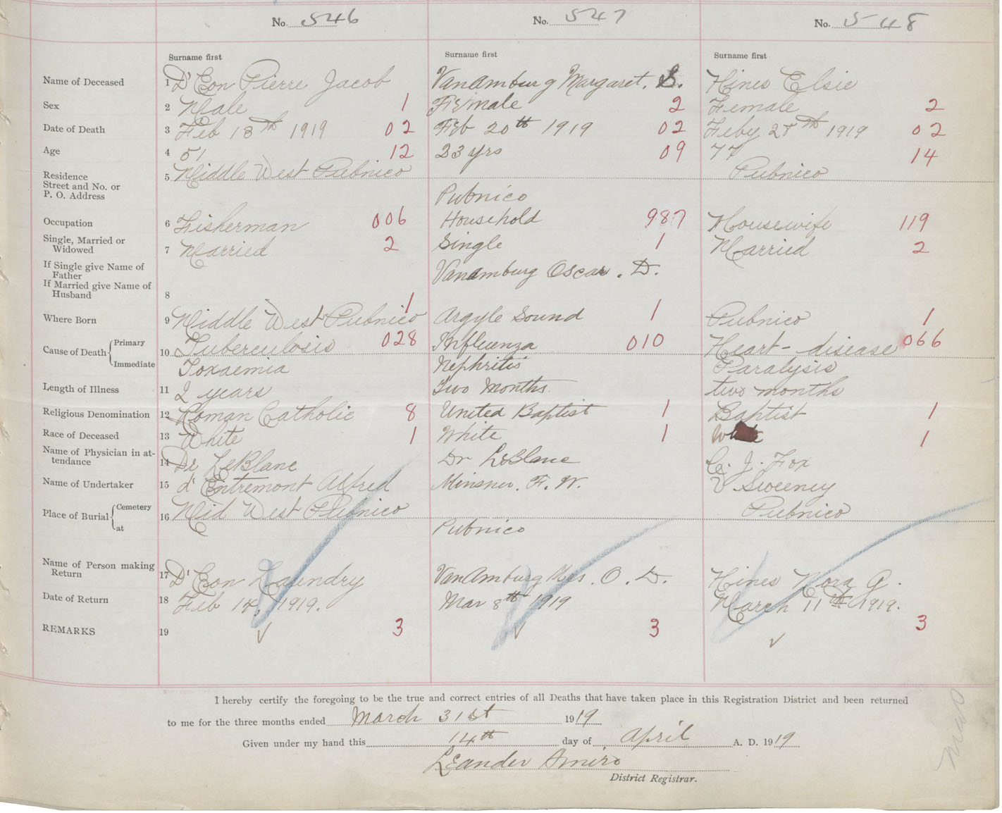 Death Registration: Year: 1919 book: 51 page: 169 number: 546