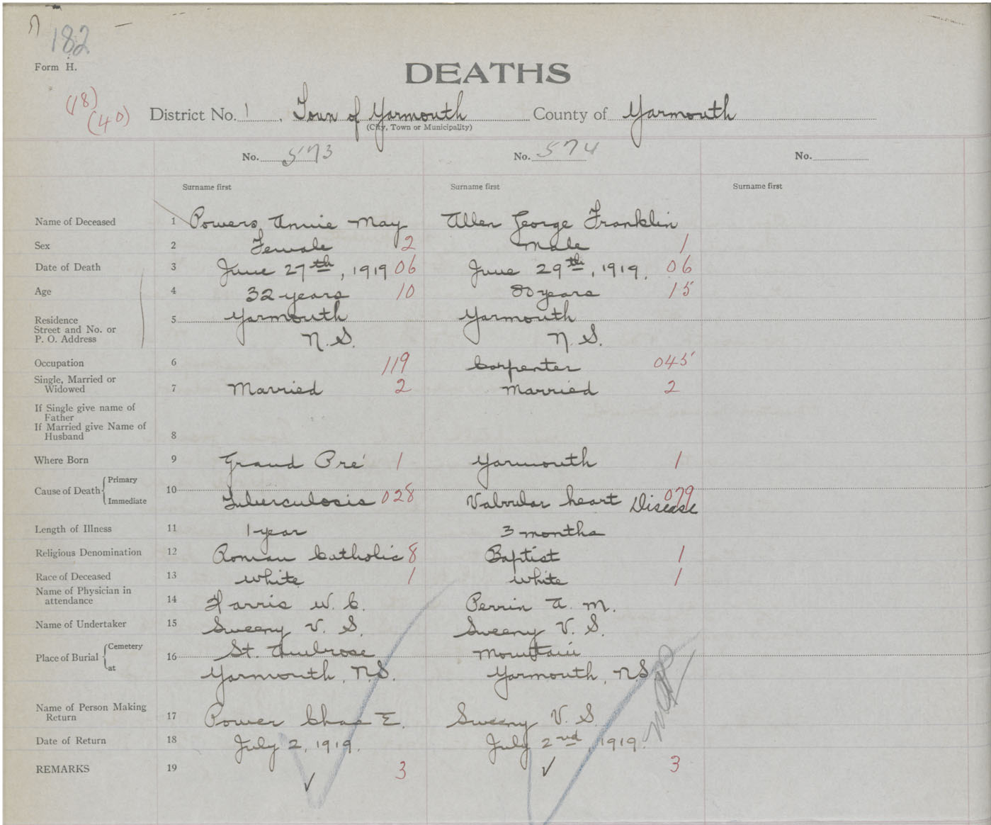 Death Registration: Year: 1919 book: 51 page: 182 number: 573