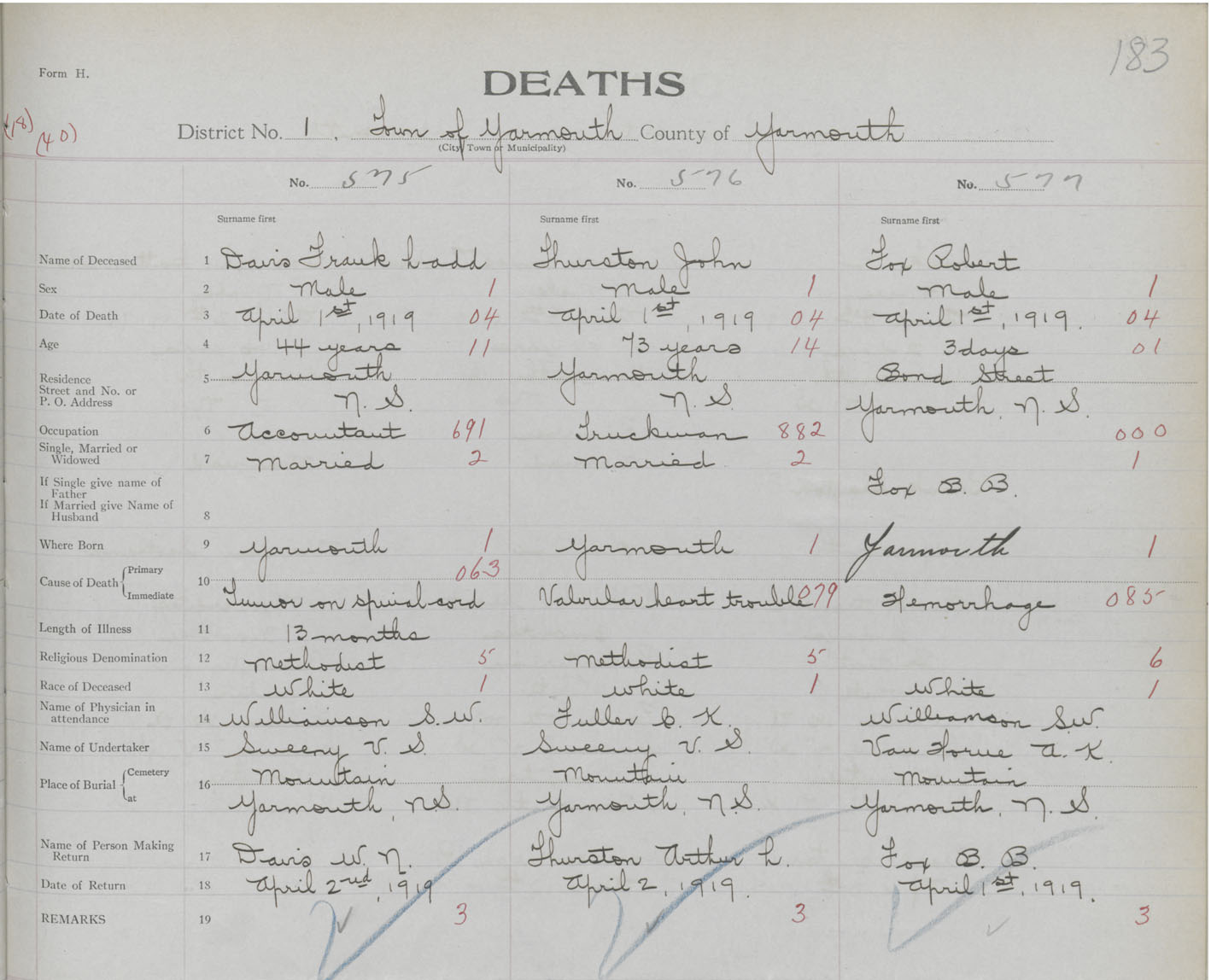Death Registration: Year: 1919 book: 51 page: 183 number: 575