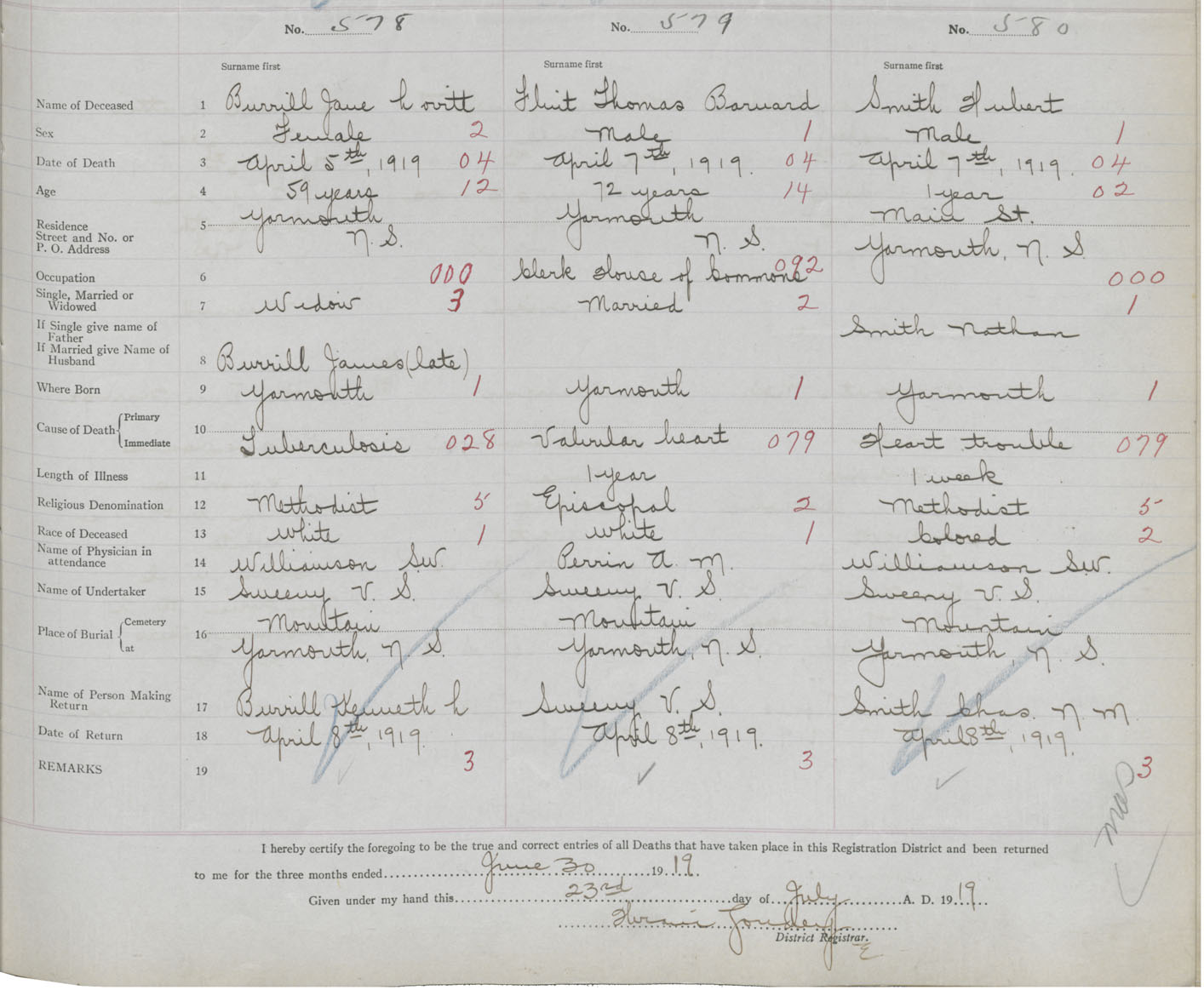 Death Registration: Year: 1919 book: 51 page: 183 number: 578