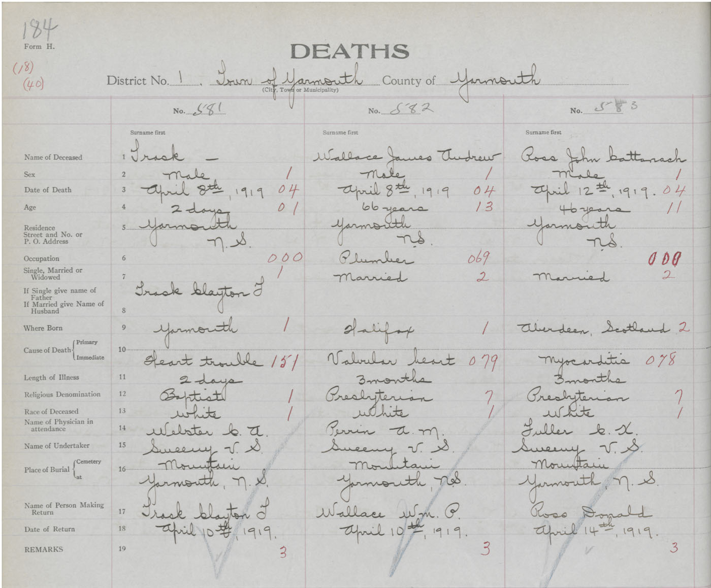Death Registration: Year: 1919 book: 51 page: 184 number: 581