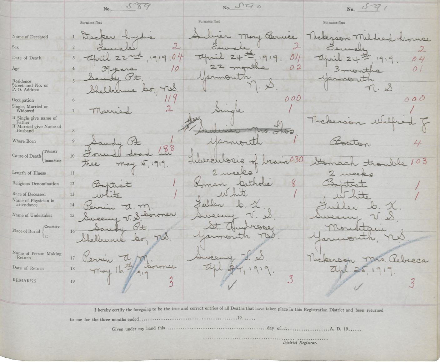 Death Registration: Year: 1919 book: 51 page: 185 number: 589