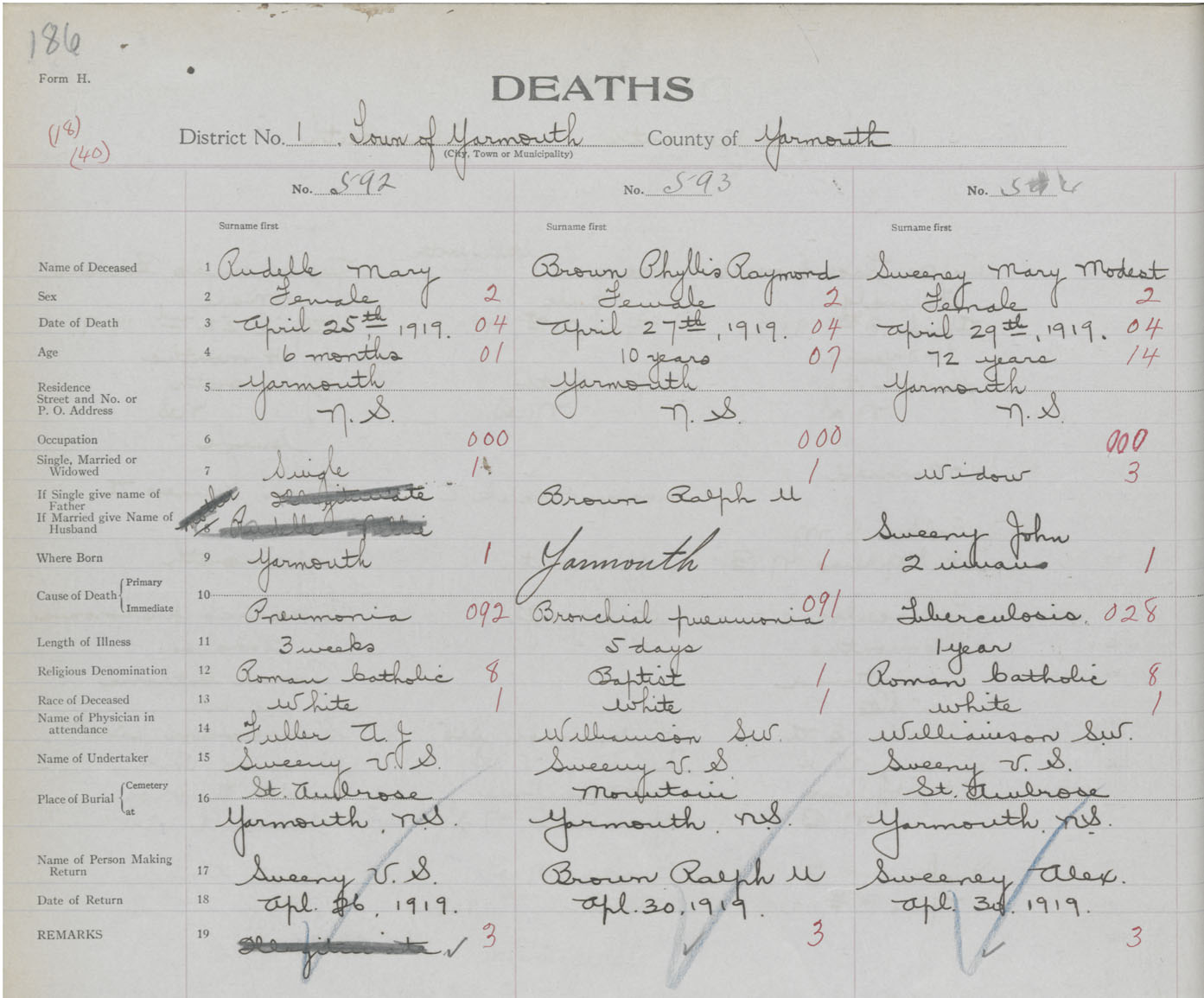 Death Registration: Year: 1919 book: 51 page: 186 number: 592