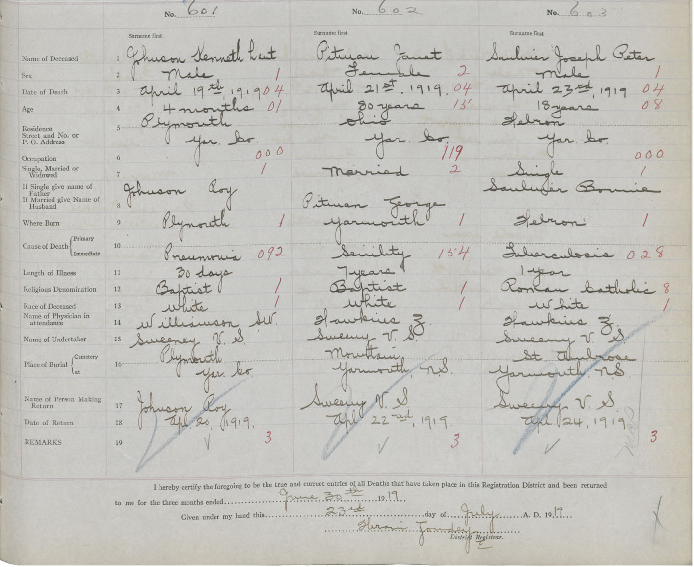Death Registration: Year: 1919 book: 51 page: 187 number: 603