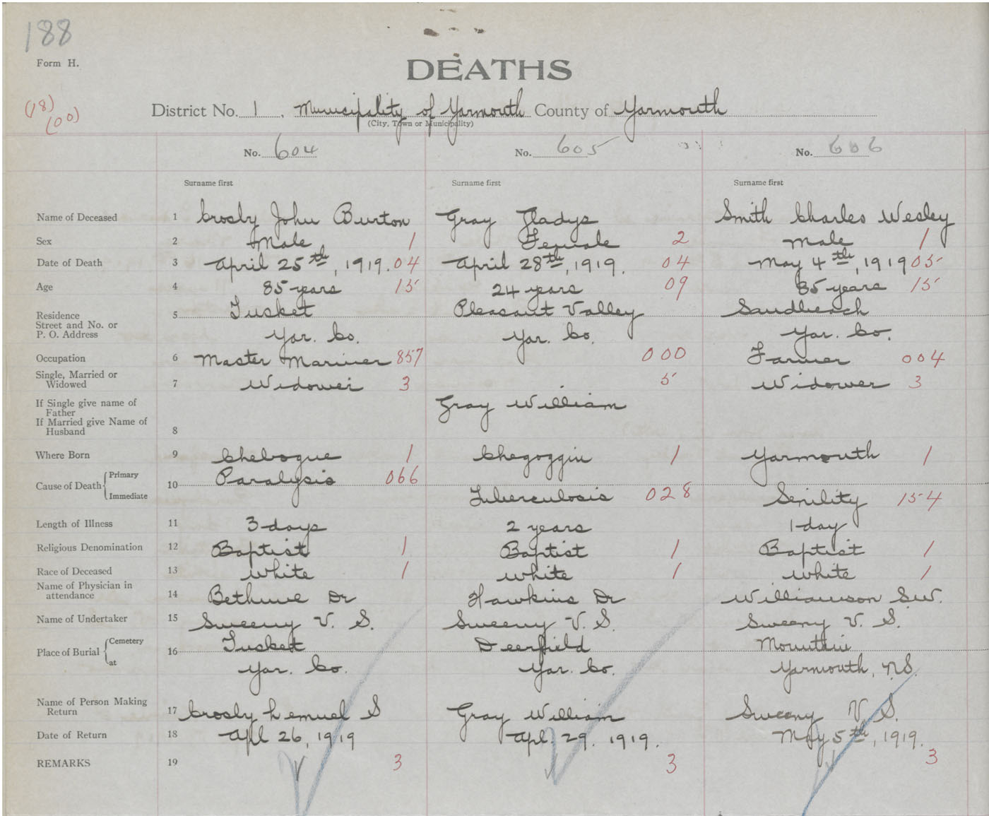 Death Registration: Year: 1919 book: 51 page: 188 number: 606