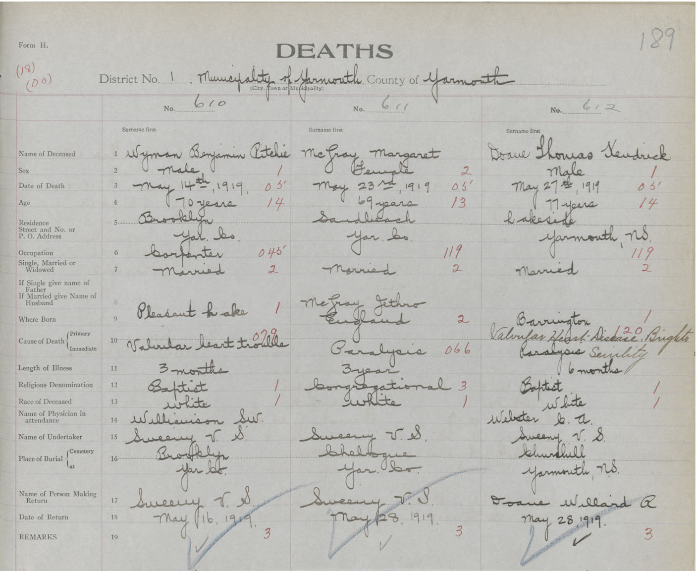 Death Registration: Year: 1919 book: 51 page: 189 number: 612