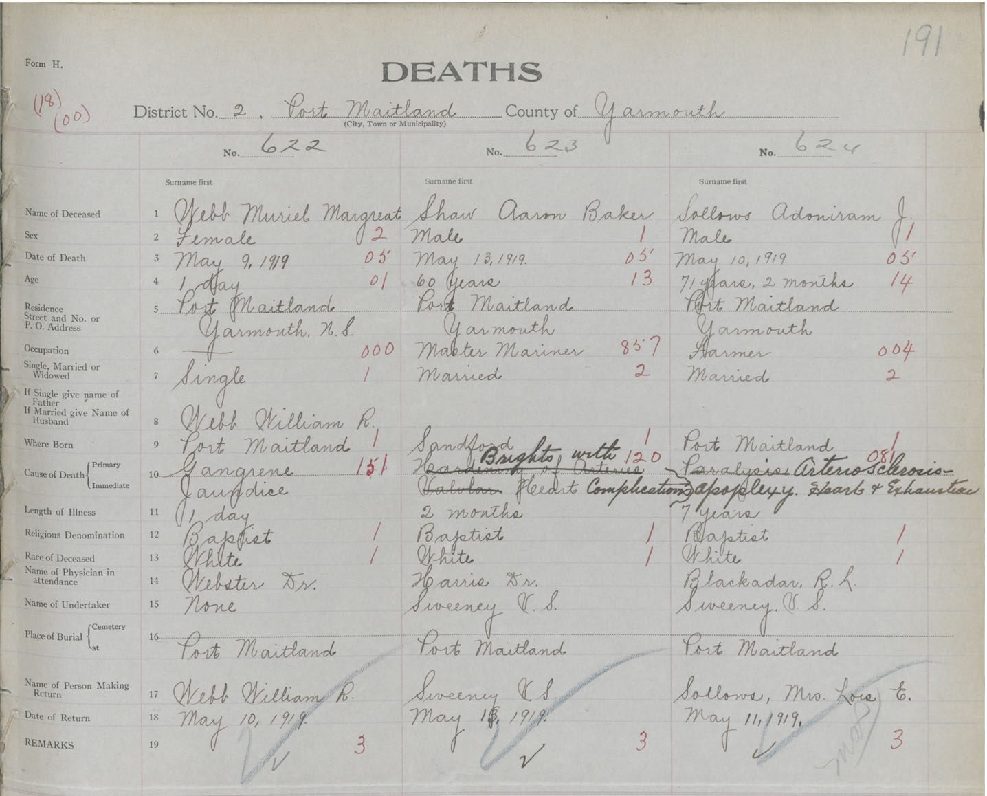 Death Registration: Year: 1919 book: 51 page: 191 number: 624
