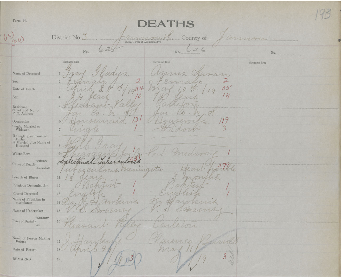 Death Registration: Year: 1919 book: 51 page: 193 number: 626