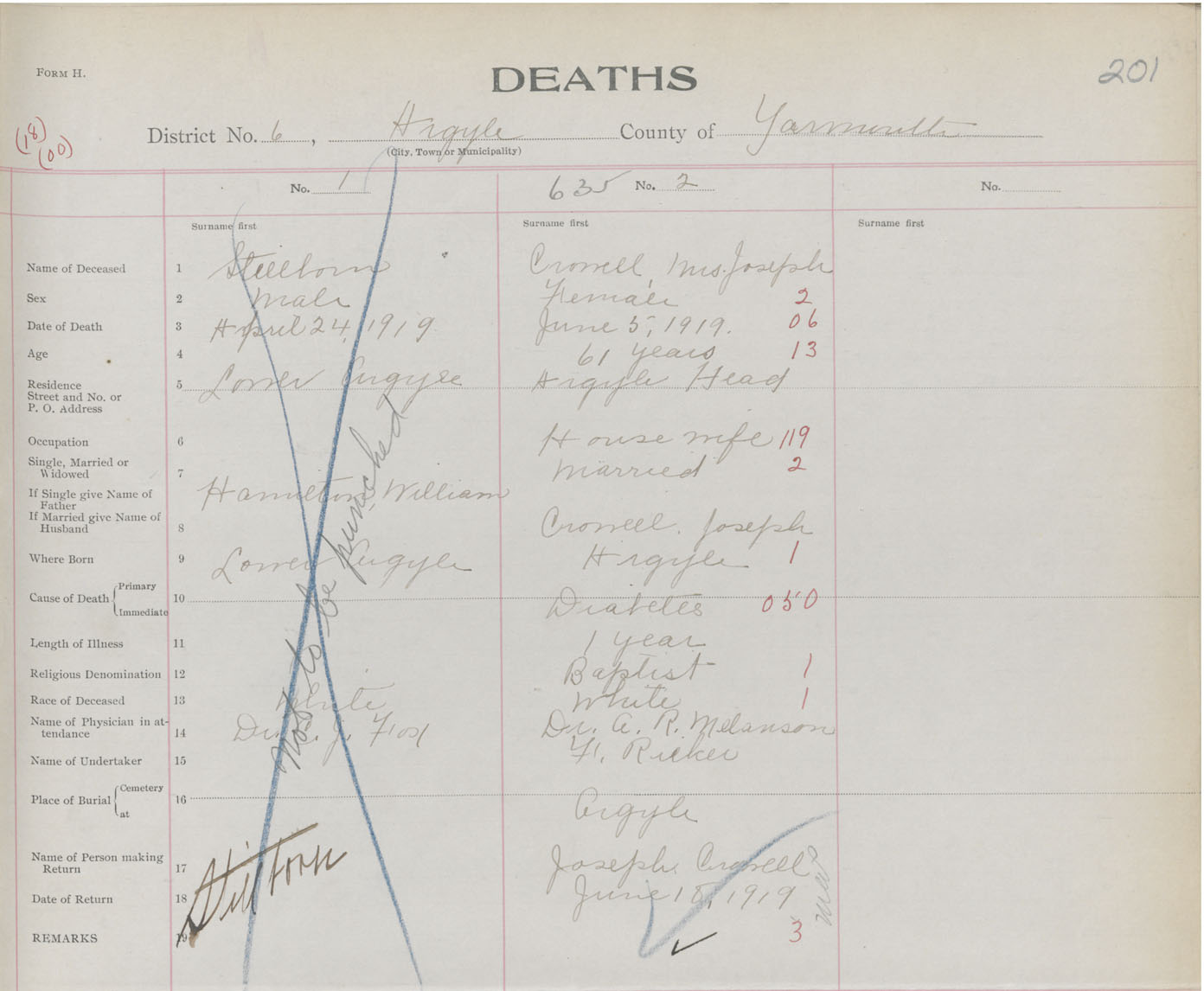 Death Registration: Year: 1919 book: 51 page: 201 number: 635