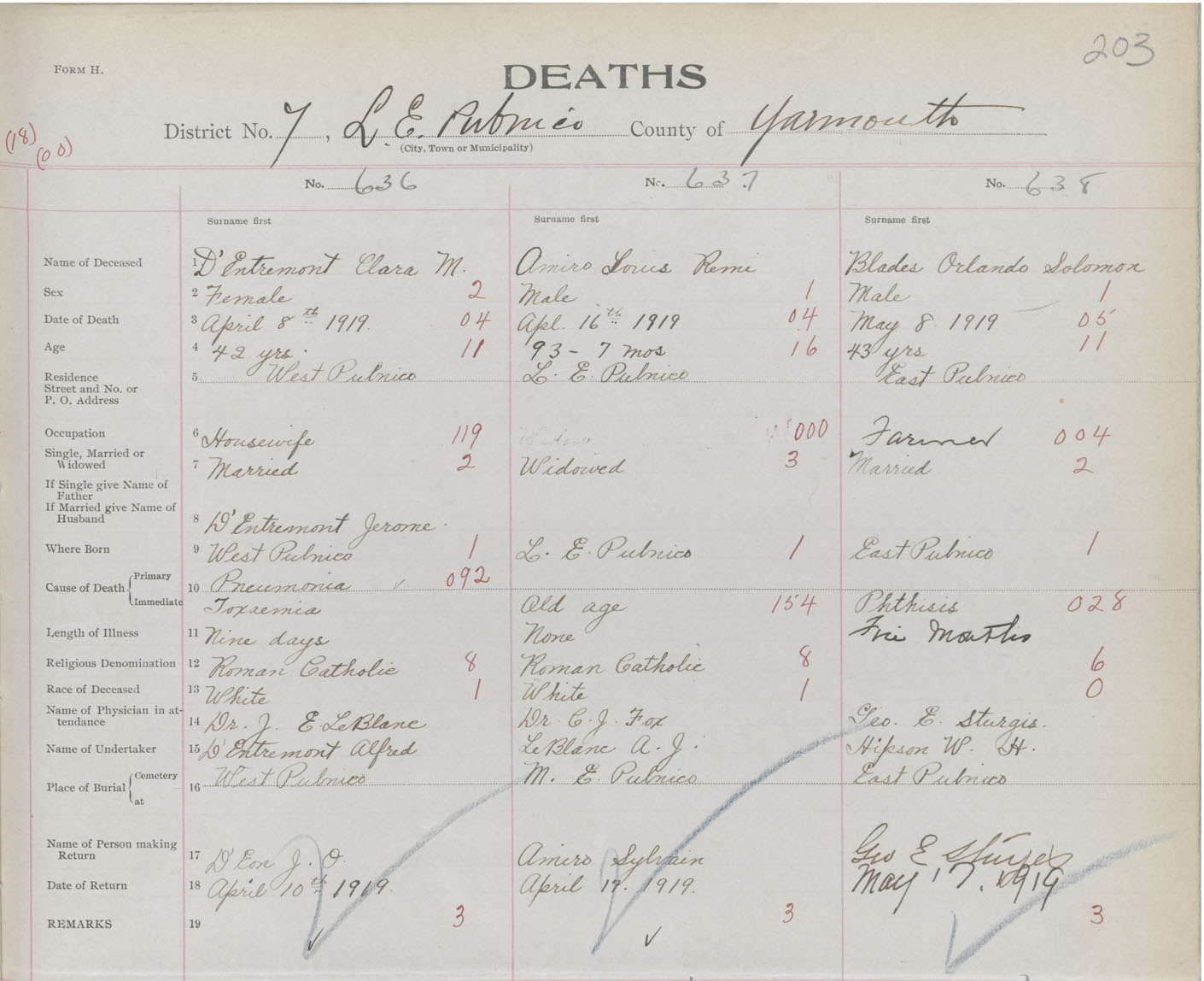 Death Registration: Year: 1919 book: 51 page: 203 number: 638