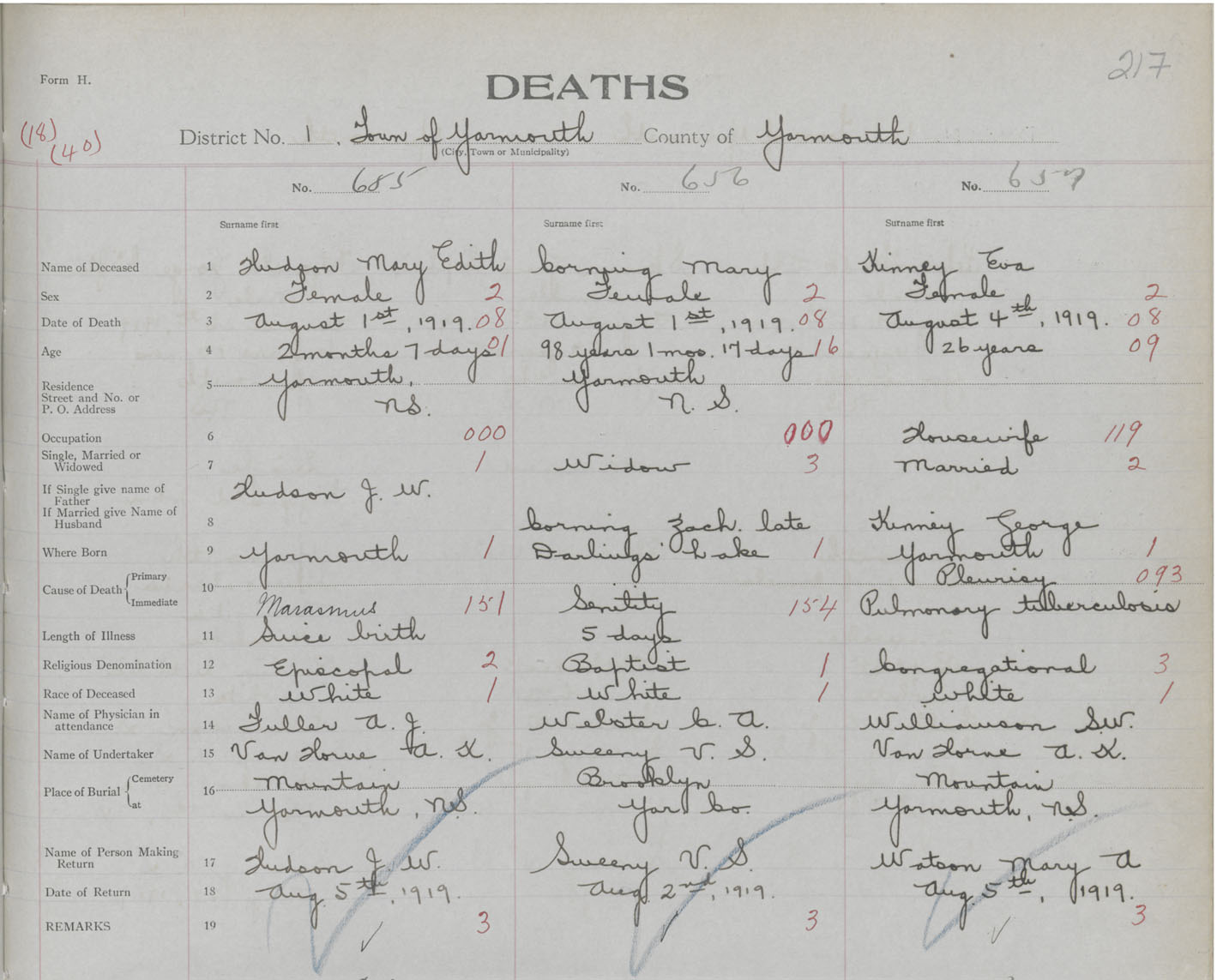 Death Registration: Year: 1919 book: 51 page: 217 number: 657