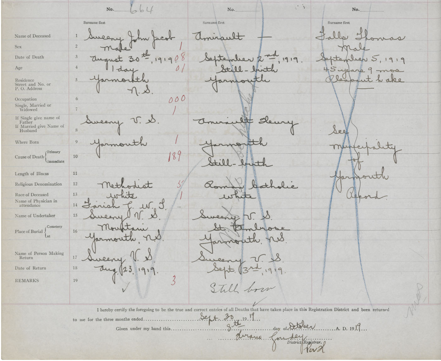 Death Registration: Year: 1919 book: 51 page: 218 number: 664