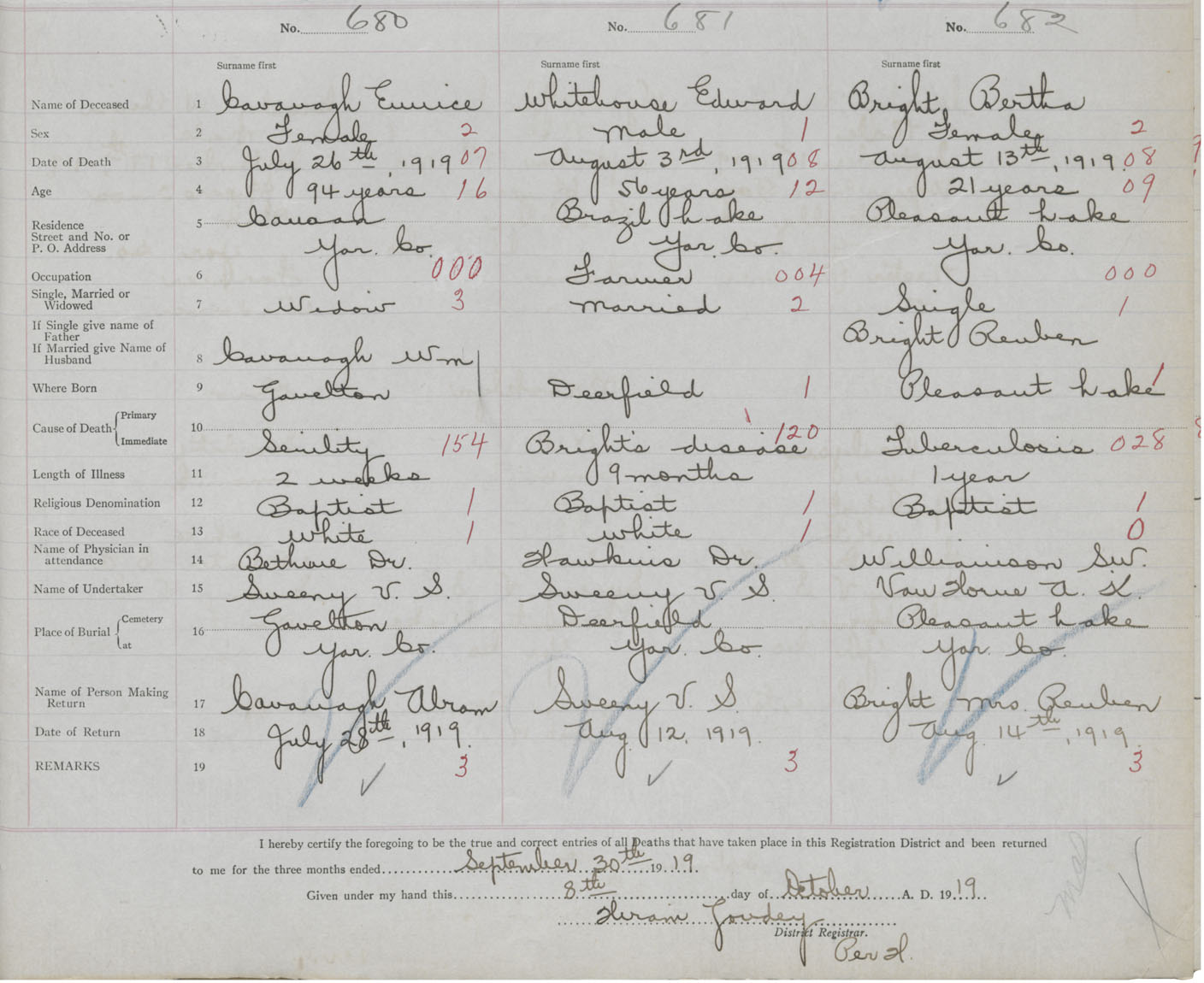 Death Registration: Year: 1919 book: 51 page: 221 number: 682
