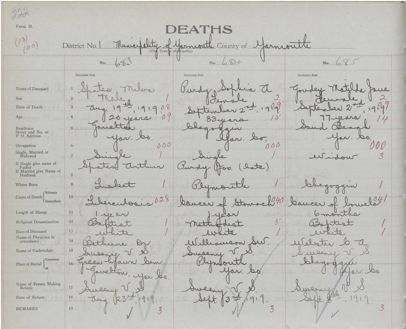 Death Registration: Year: 1919 book: 51 page: 222 number: 685