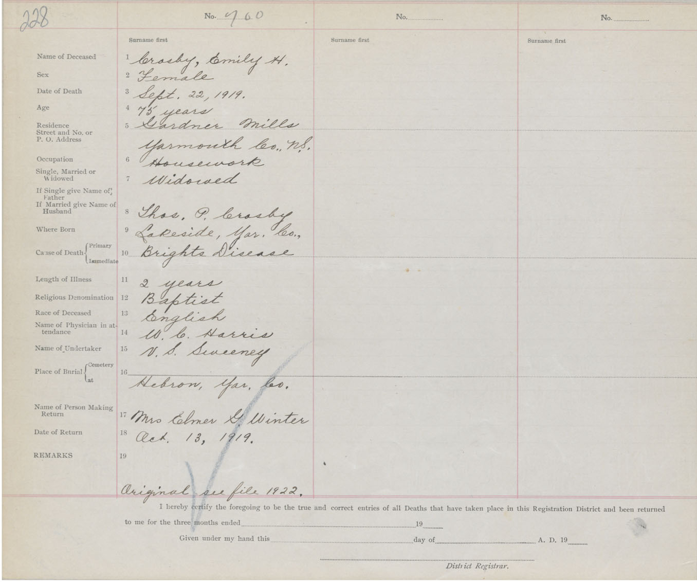Death Registration: Year: 1919 book: 51 page: 228 number: 700