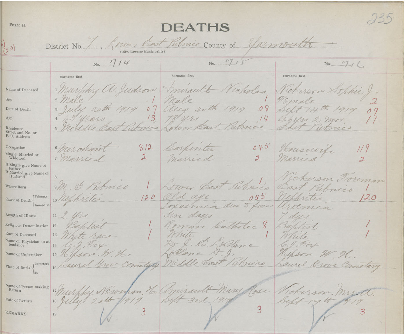 Death Registration: Year: 1919 book: 51 page: 235 number: 716