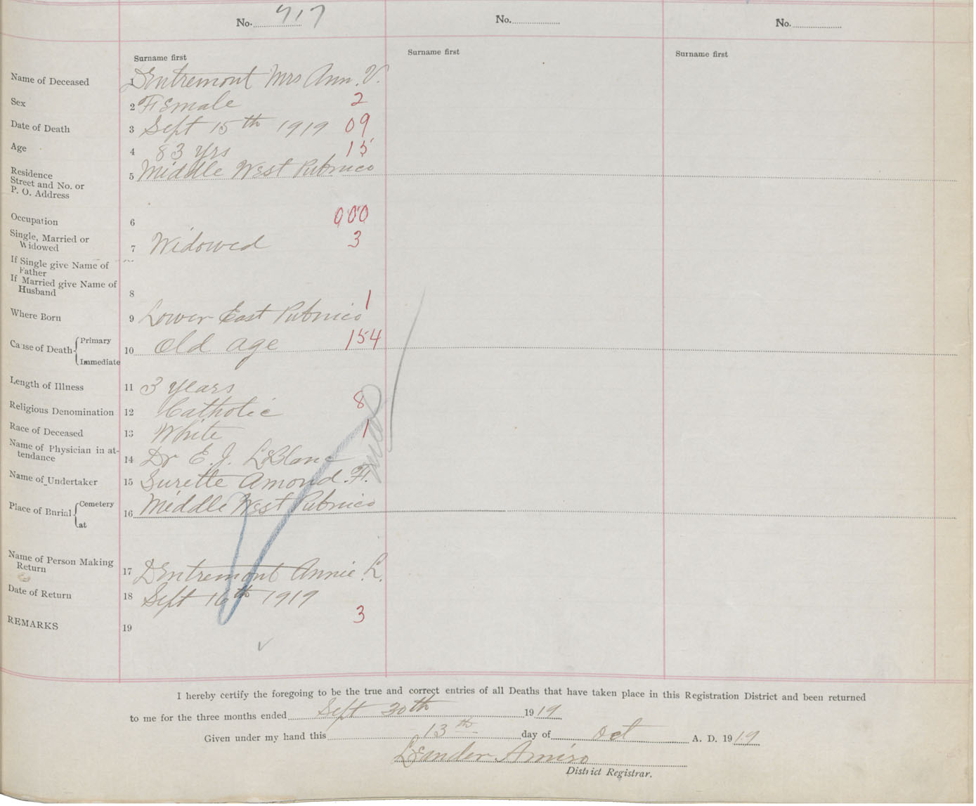 Death Registration: Year: 1919 book: 51 page: 235 number: 717
