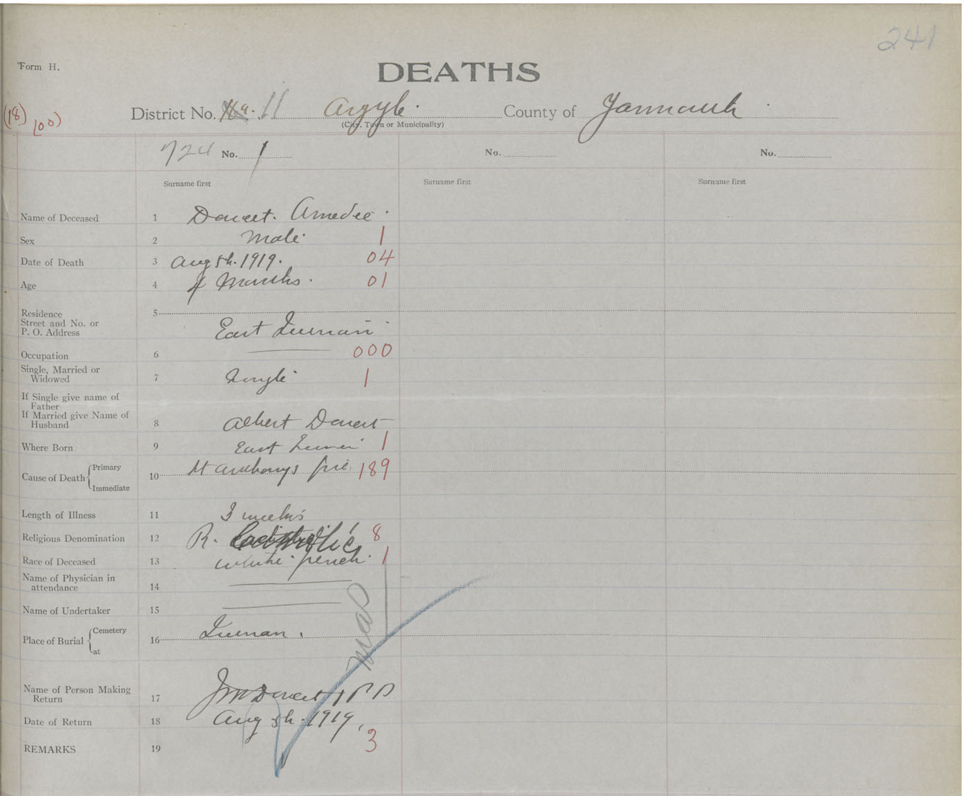 Death Registration: Year: 1919 book: 51 page: 241 number: 724