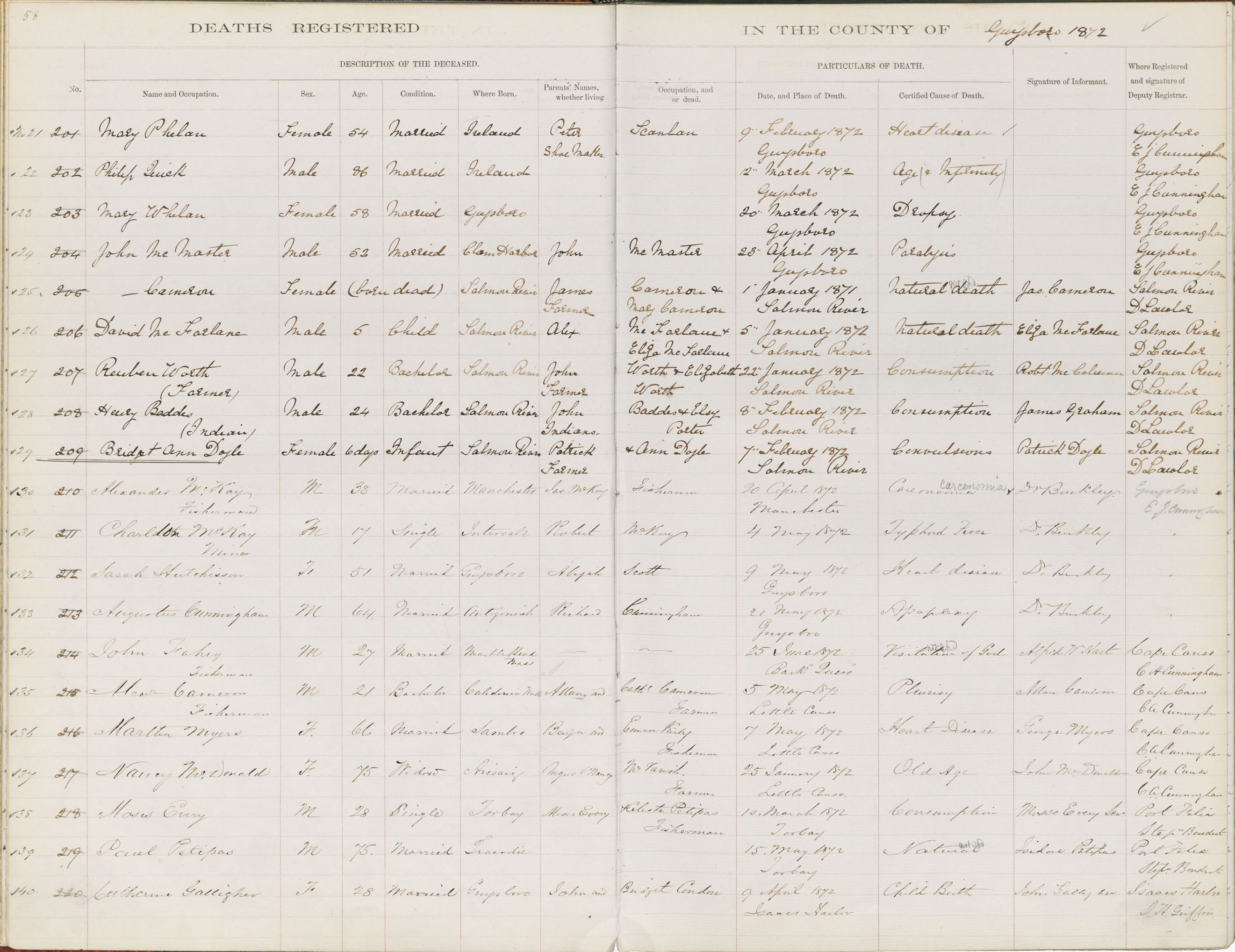 Death Registration: Year: 1872 book: 1807 page: 58 number: 21