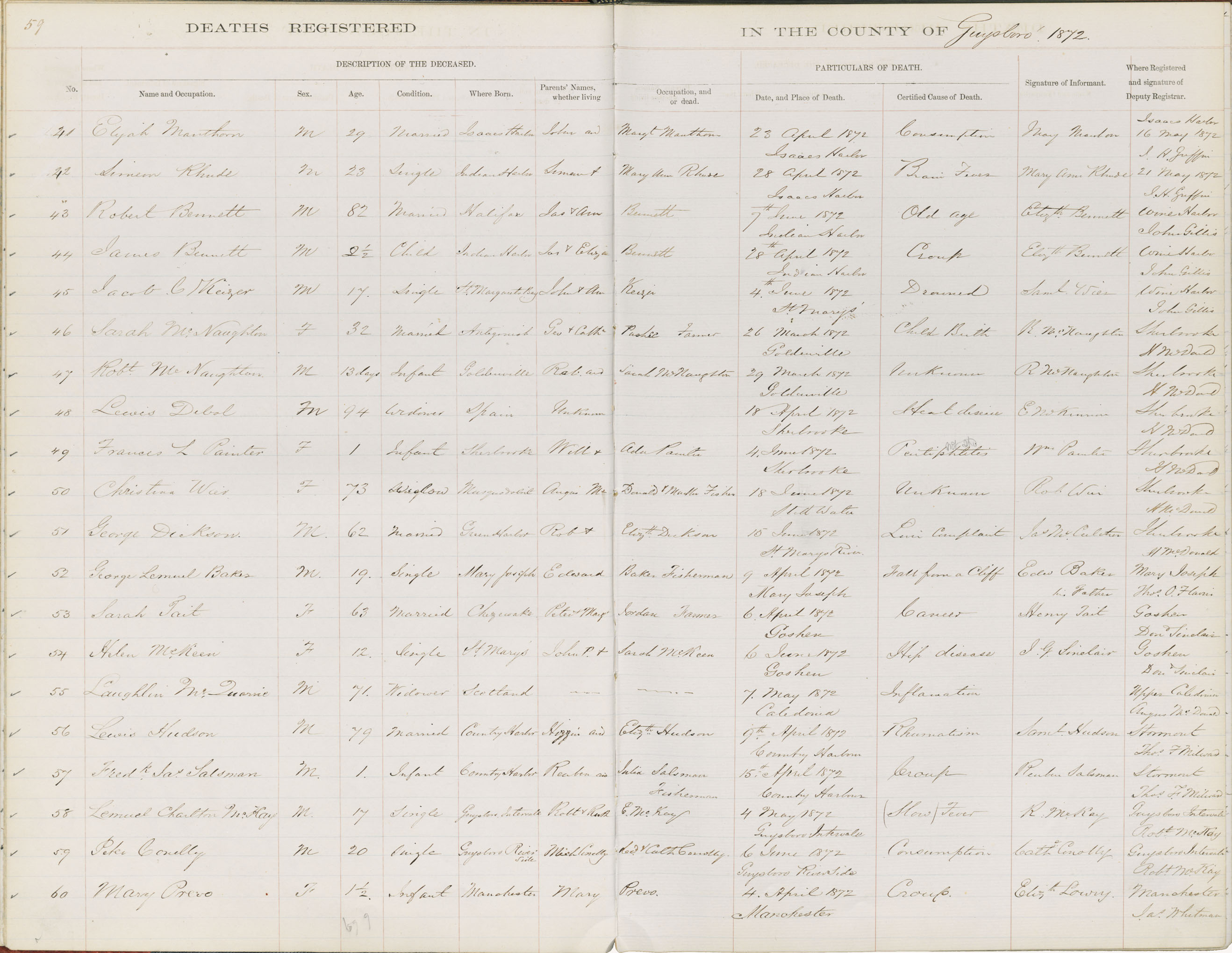 Death Registration: Year: 1872 book: 1807 page: 59 number: 41