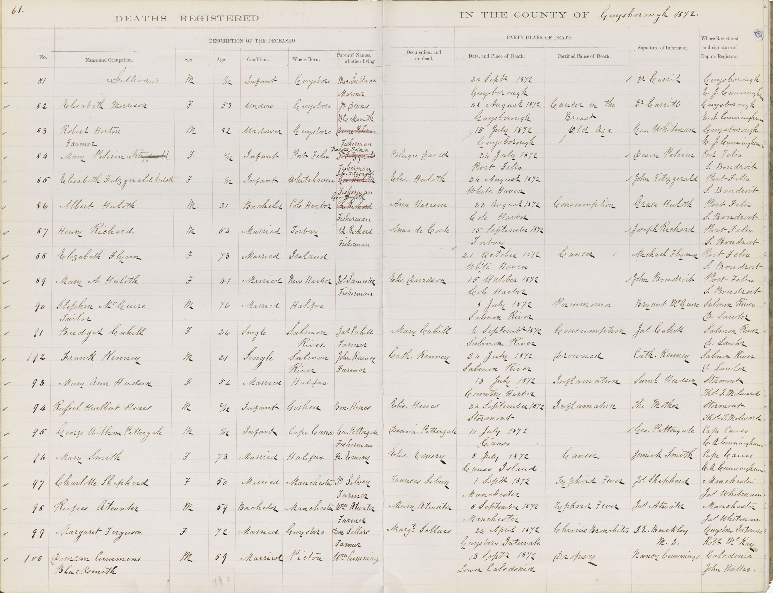 Male Death Registration: Year: 1872 book: 1807 page: 61 number: 81