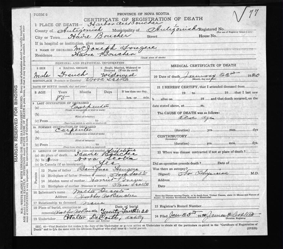 Male Death Registration: Year: 1920 file: 54 number: 77